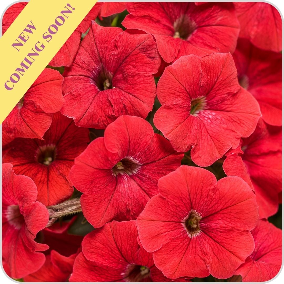 This vigorous petunia with a trailing, mounding habit delivers masses of deep bright red blooms that do not fade from Spring through Autumn.